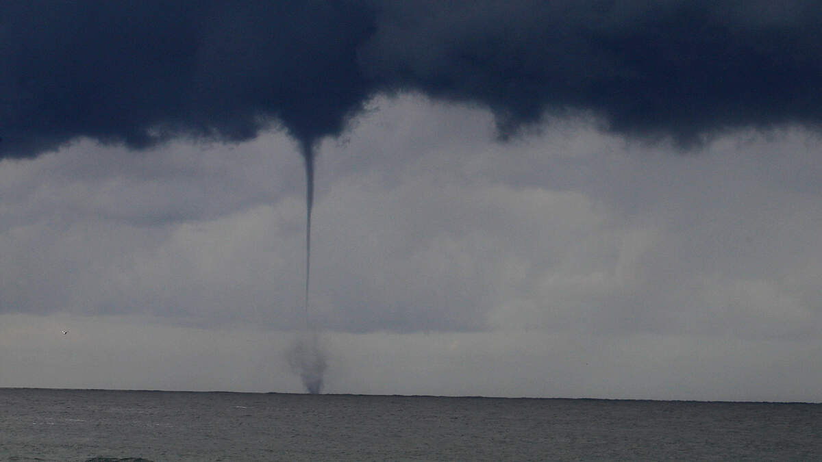 As a line of severe storm came on shore yesterday a quick waterspout kicked up and sent people running and screaming.
