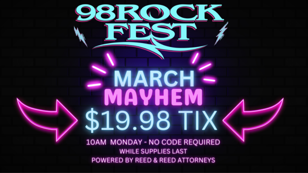 Starting this morning at 10am, Select 98ROCKFEST, Presented by Reed & Reed Attorney at Law, tickets are ON SALE for 19 dollars and 98 cents!