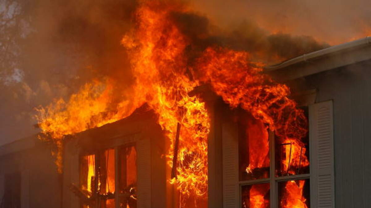 Turns out, the home is not on fire, its just Carmen And Travis Long's"Pirates of the Caribbean"-themed creation. They started putting it together three years ago and have added to it each year. Now, they've really outdone themselves. There are several smoke machine which does give the impression, along with the window decorations, the house is really burning.