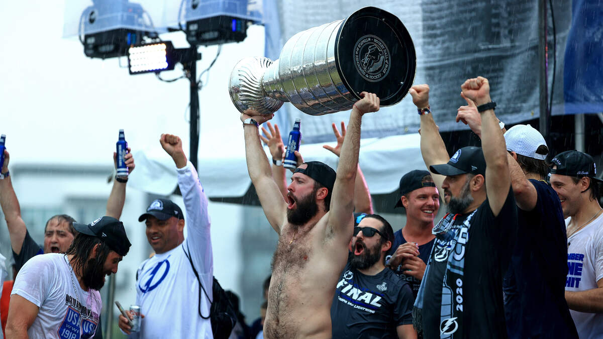 The photo is 100% real. It shows player Pat Maroon holding a heavily dented Stanley Cup after a day celebration around Tampa Bay. The team has had more than enough hate since winning the cup with the post game press conference with a wasted Nikita Kucherov serving as the starting point.
